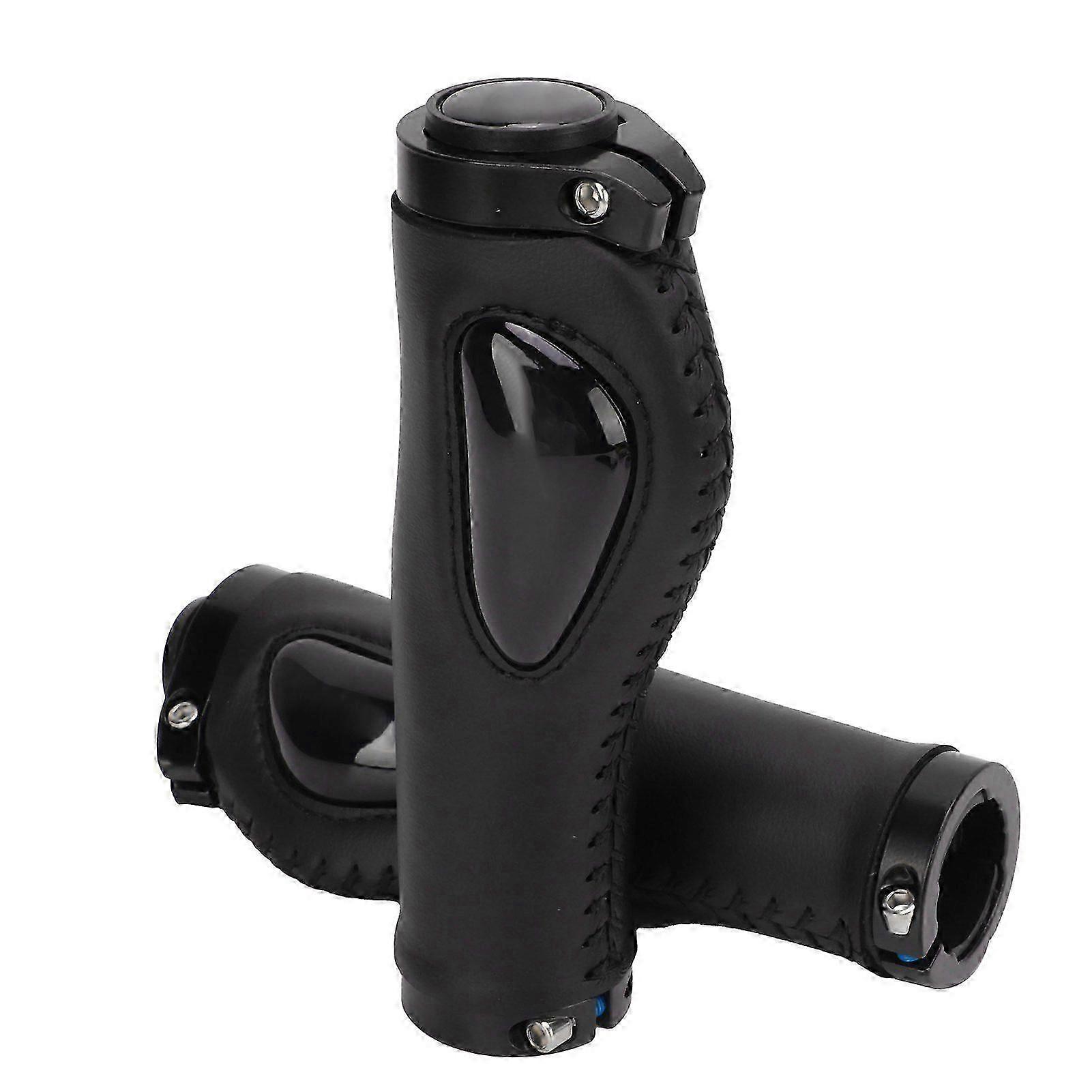 Leather Bike Handle Grips Bilateral Lock Shock Absorption Black for Mountain Road Bike Accessories )
