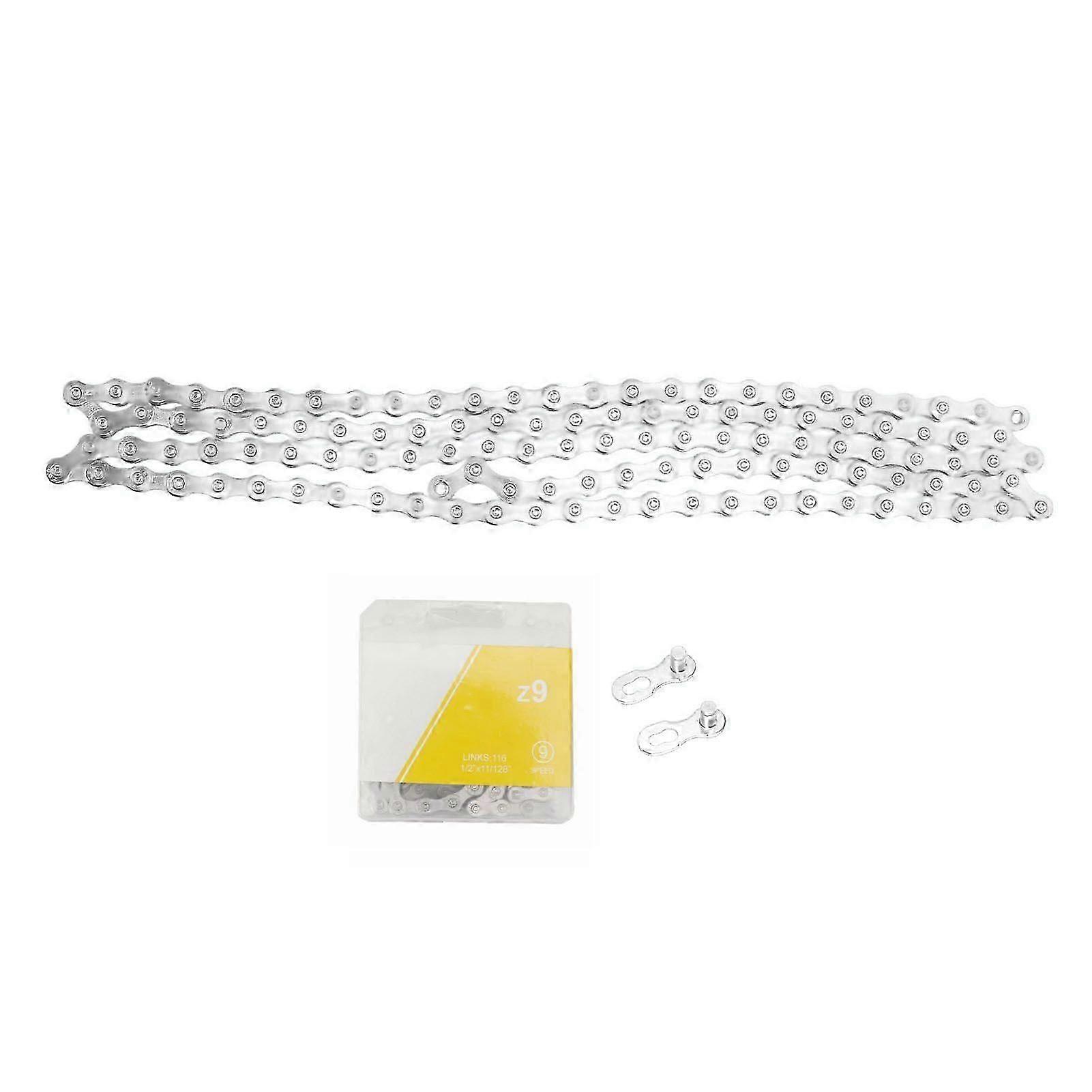 9 Speed Bicycle Chain Lightweight Alloy Steel Mountain Road Bike Chain with Chain Link Connector Silver )