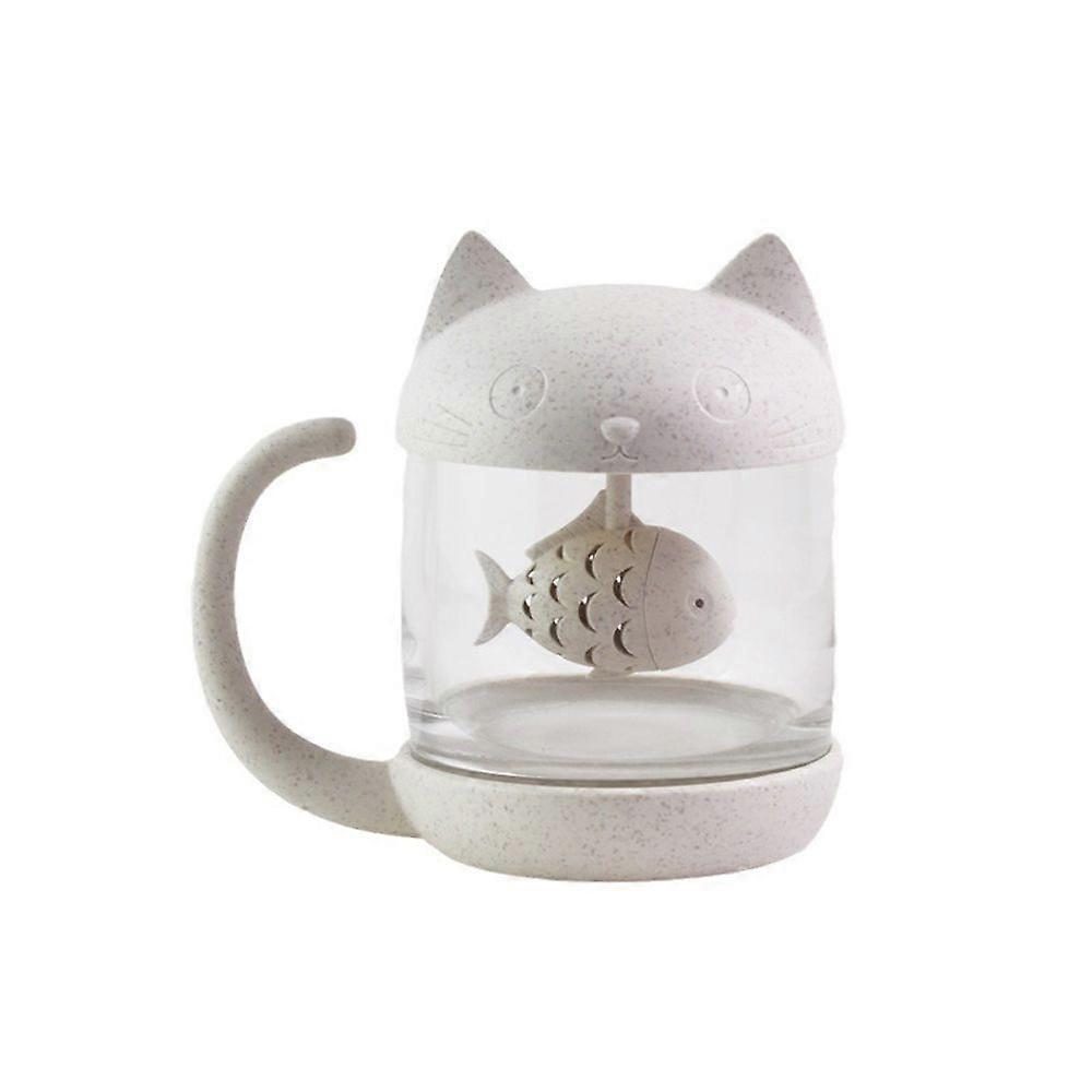Product introduction:This cat-themed glass teacup has a playful and vivid shape. The cup body is made of high-transparency heat-resistant glass. It is clear and transparent, and the color of the tea soup can be seen directly, bringing a more interesting tea drinking experience. The cup lid is designed in the shape of cat ears, with a detachable fish-shaped tea strainer. It is not only practical but also very decorative. It is suitable for brewing tea, herbal tea or fruit tea to add interest to life. The cup body is light and easy to hold, and the bottom is stable and non-slip. Whether it is for daily use or as a gift to express your feelings, it is a unique choice.Product specifications:Capacity: about 250mlMaterial: glass + siliconeStyle: creative cat shapeApplicable scenarios: office, home, gift, cafe