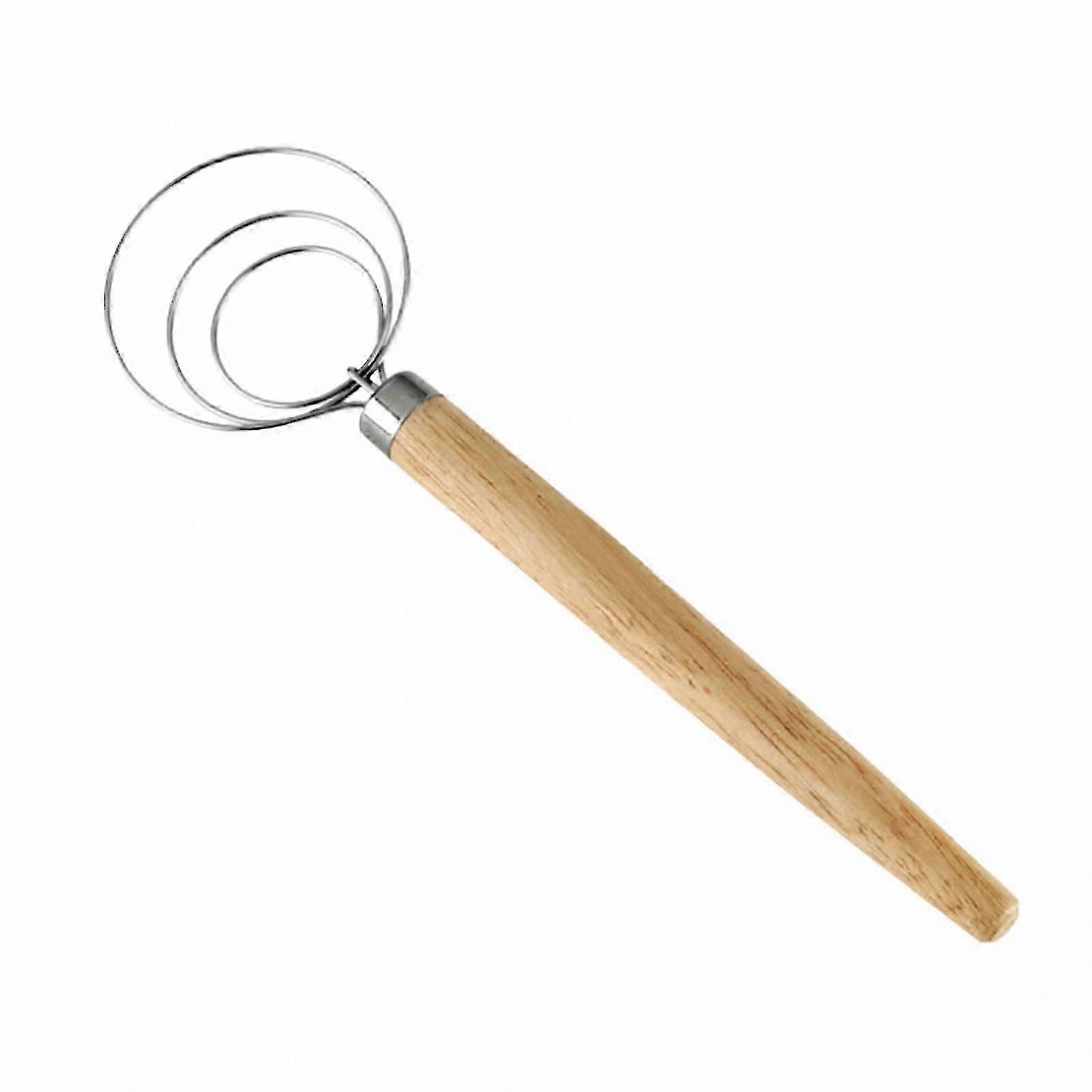 13-Inch Danish Dough Whisk with Wooden Handle, Stainless Steel Flour Mixer, Food Grade Ring Design, Egg Beater for Baking and Mixing