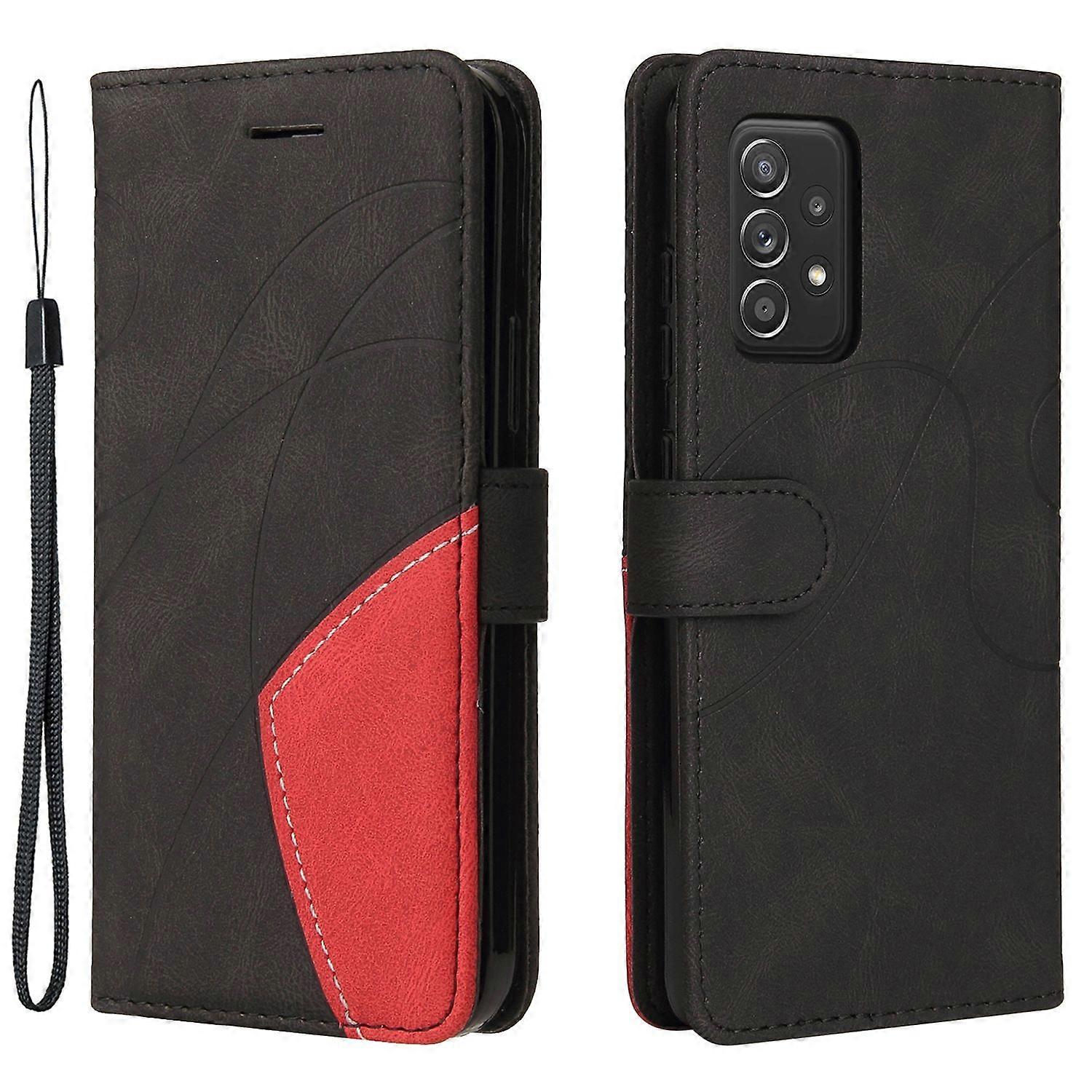 For Samsung Galaxy A52 4G 5G A52s 5G Leather Case Wallet Stand Color Splicing Phone Cover - Black