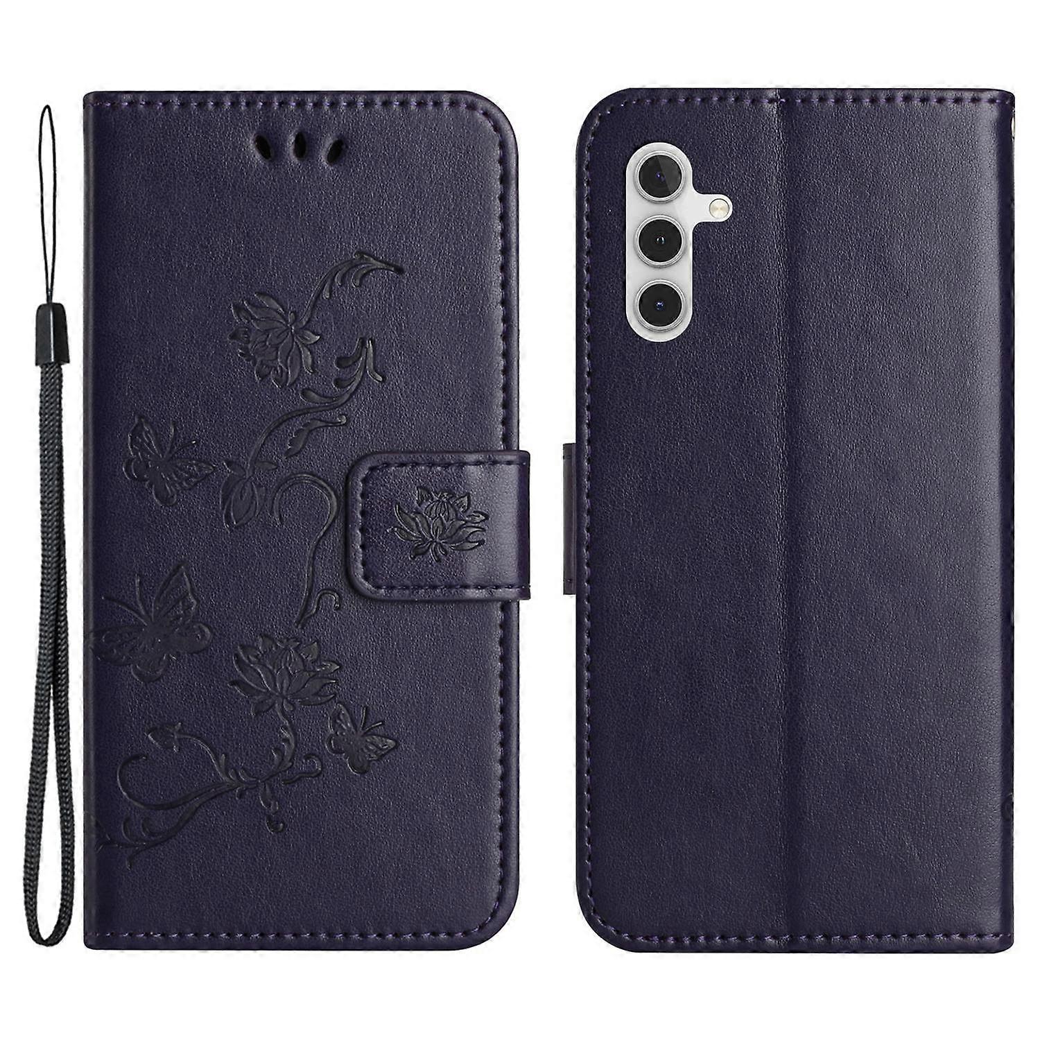 For Samsung Galaxy S24 FE Case Leather Phone Cover Butterfly Flower Pattern - Dark Purple