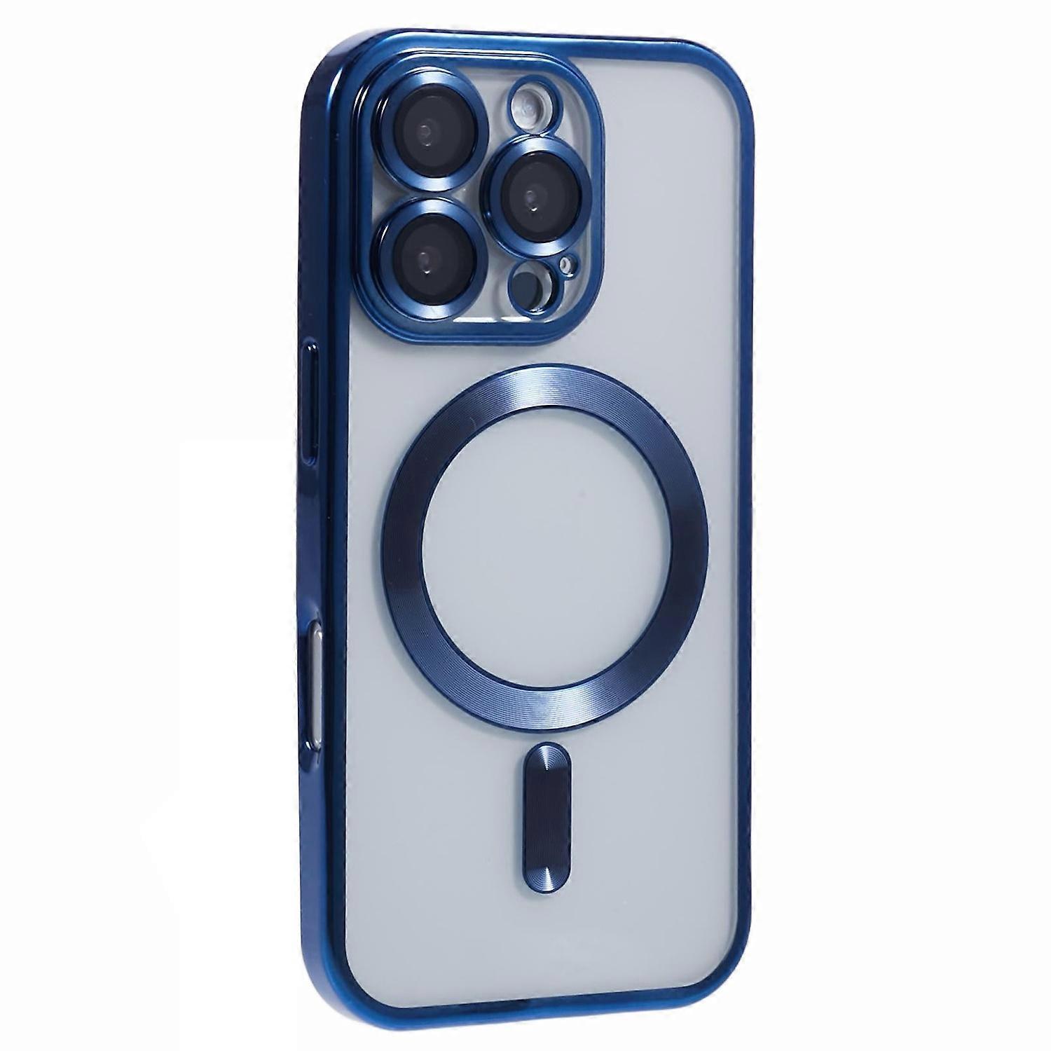 For iPhone 16 Pro Magnetic Case Soft TPU Electroplating Phone Cover with Lens Film - Dark Blue
