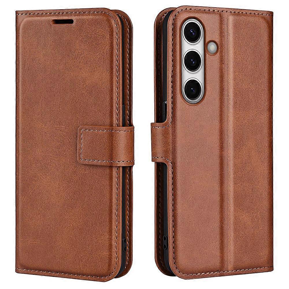 For Samsung Galaxy S24 FE Stand Case Calf Texture Anti-Scratch Leather Phone Cover - Light Brown