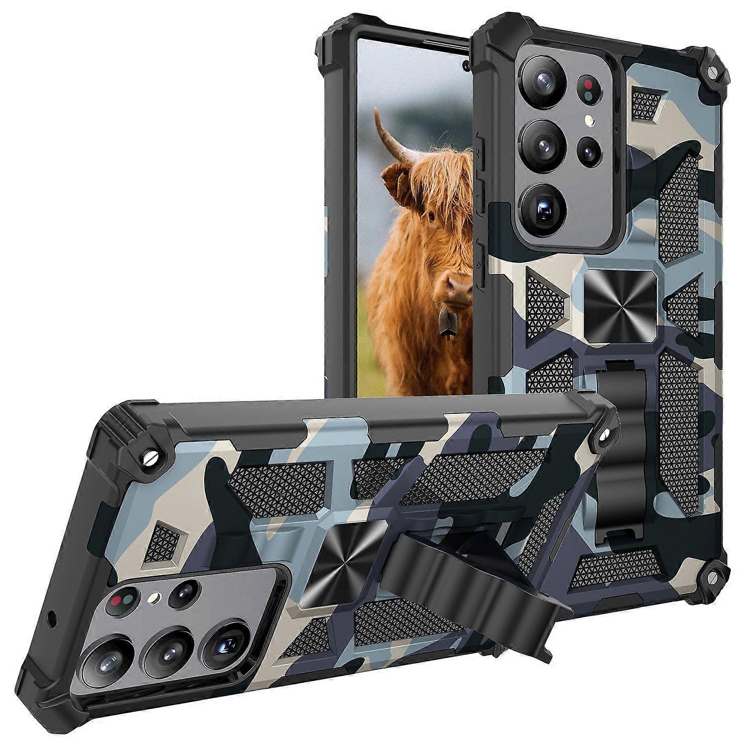For Samsung Galaxy S23 Ultra Camouflage Design Soft TPU Hard PC Shockproof Cover Kickstand Phone Cas