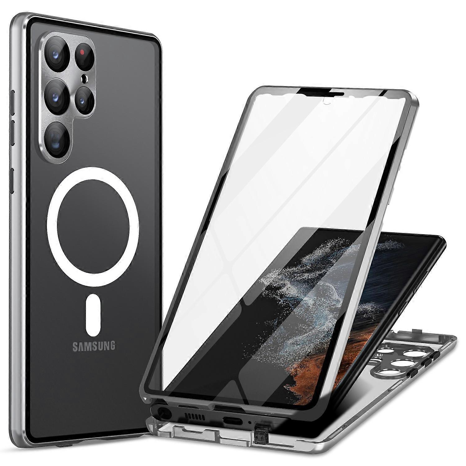 For Samsung Galaxy S24 Ultra Magnetic Case Tempered Glass+Matte PC Metal Frame Cover - Silver