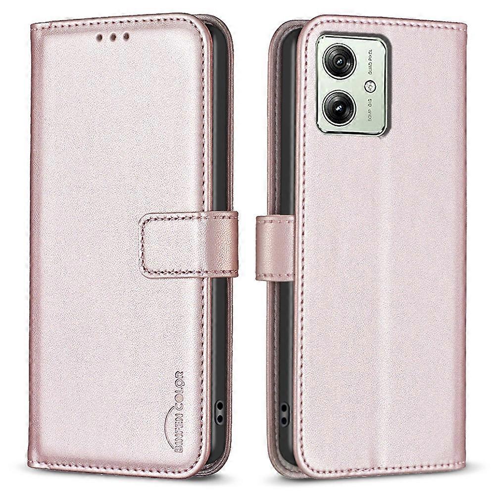 BINFEN COLOR BF17 For Motorola Moto G54 5G Leather Cover Flip Stand Wallet Phone Case - Rose Gold