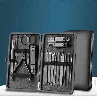 Manicure Pedicure Kit Stainless Steel Nail Clippers with Leather Travel Case - 16 in 1