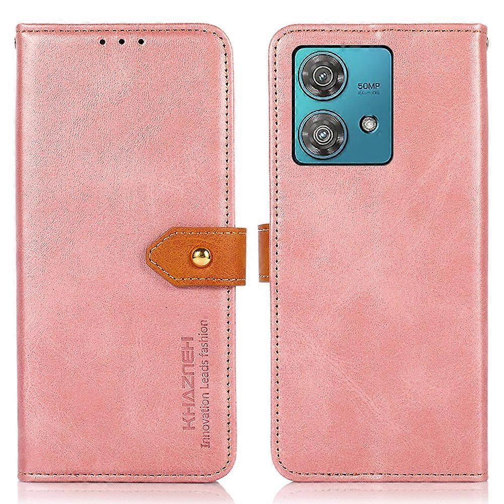 KHAZNEH For Motorola Edge 40 Neo 5G Case PU Leather Wallet Phone Cover with Stand - Rose Gold