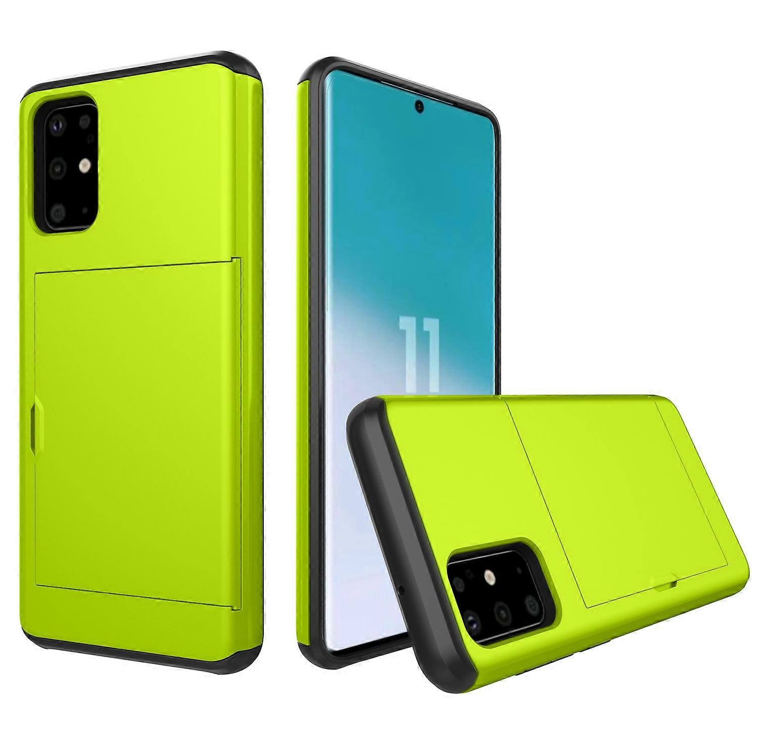 Card Slot PC + TPU Hybrid Phone Case for Samsung Galaxy S20 4G S20 5G - Yellowgreen
