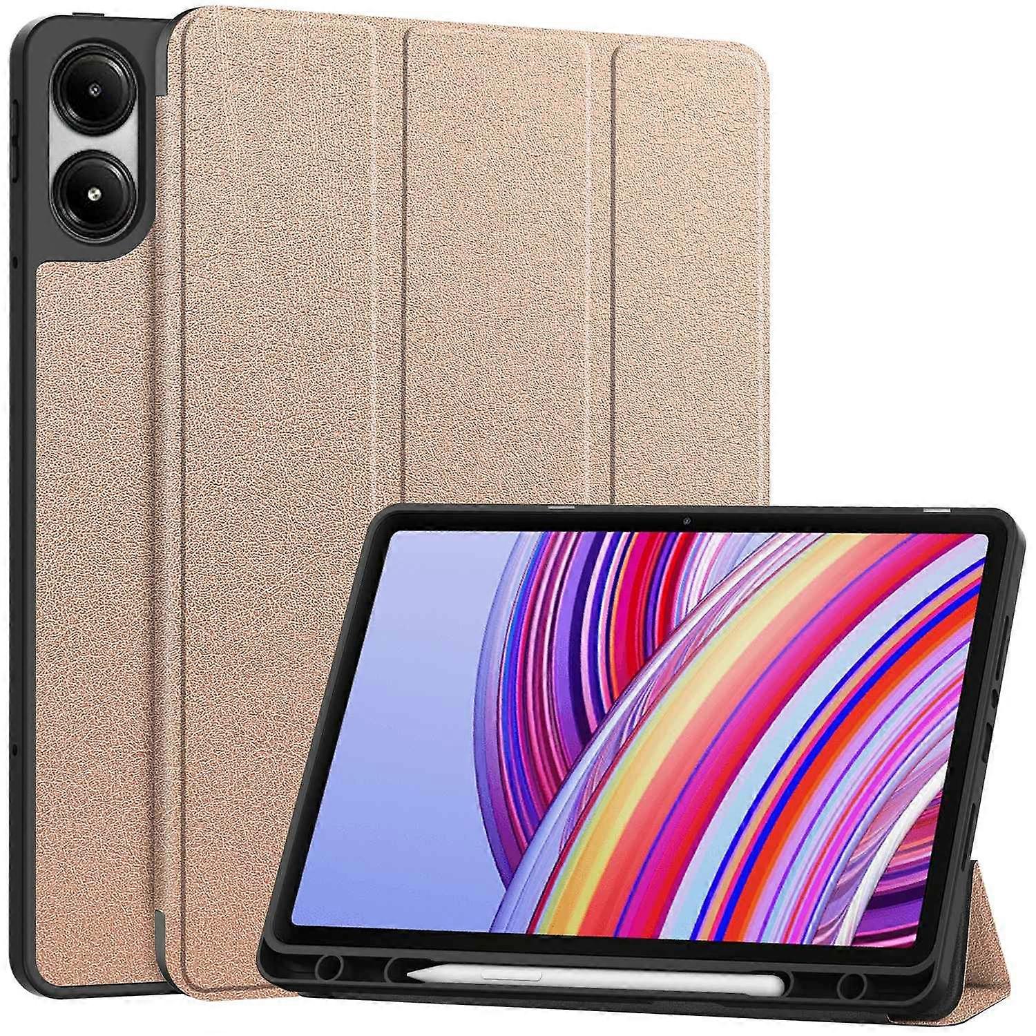 •【Material】Made of delicate PU leather combined with a TPU inner case, offering a fine quality and tempting appearance •【Tri-fold Stand】The tri-fold cover design provides a sturdy and versatile stand for hands-free viewing and typing, simplifying your work and life •【Microfiber Lining】Scratch-proof and anti-dirt microfiber lining protects your tablet’s screen, ensuring durability and cleanliness •【Precise Cut-outs】Precise cut-outs allow for full functionality, ensuring unhindered operation of all ports and buttons •【Pen Slot】Convenient pen slot for carrying your pen and preventing loss, although the pen is not included •【Auto Wake/Sleep Function】Supports auto wake and sleep functionality, helping conserve battery power when the tablet is not in use Compatible with: •Xiaomi Redmi Pad Pro •Xiaomi Poco Pad 4G •Xiaomi Redmi Pad Pro 5G Package included: •1 x Tri-fold Stand Smart Tablet Case •Other items not included