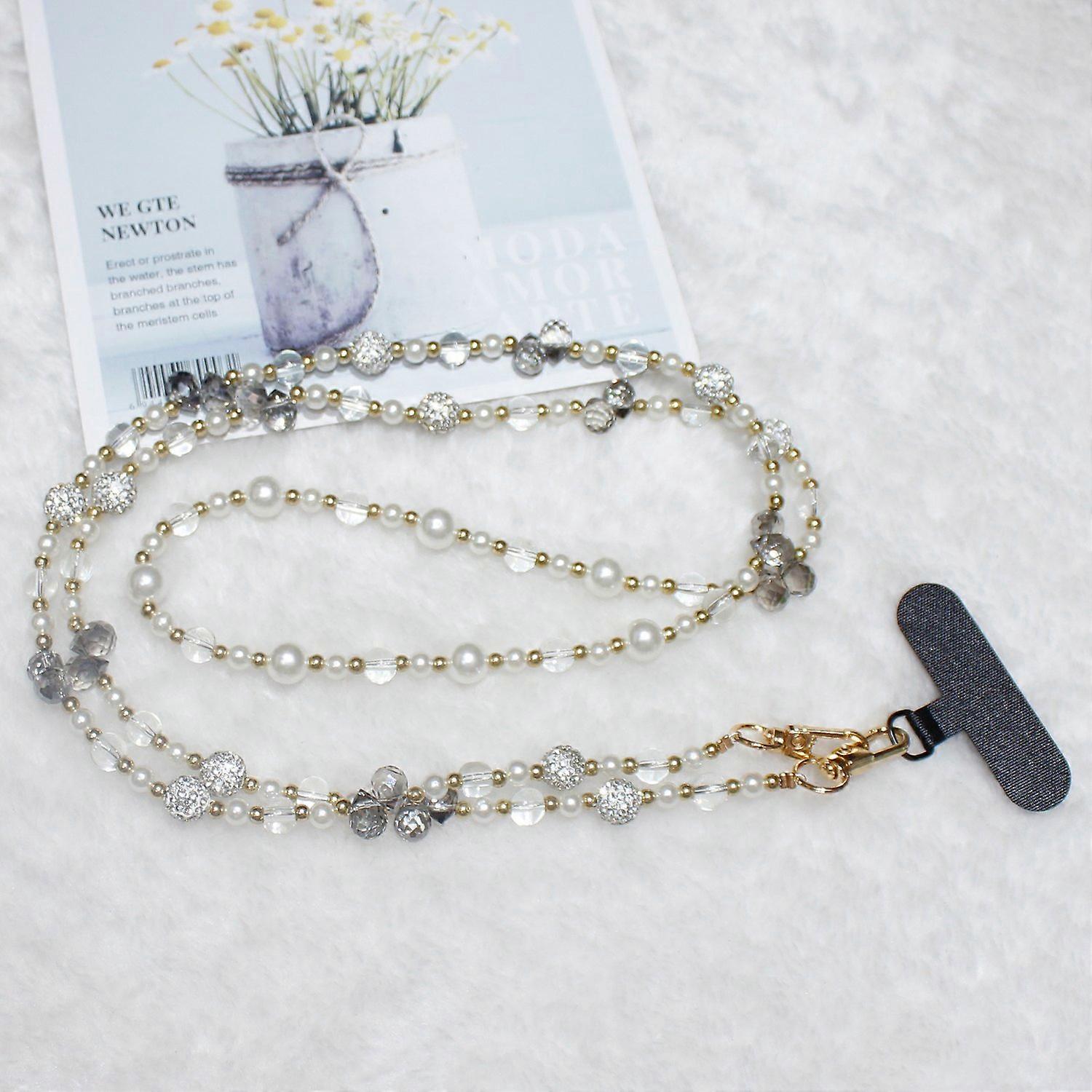 120cm Sparkling Diamond Beads Phone Strap Crossbody Chain - Silver