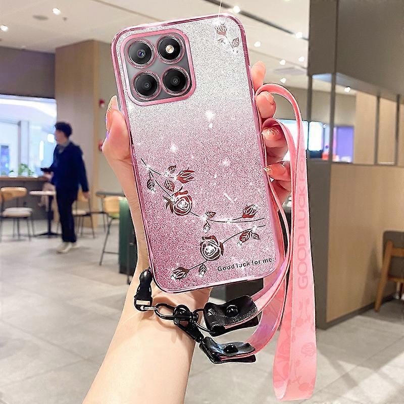 KADEM For Honor X8 5G X6 4G 70 Lite 5G Anti-Fingerprint TPU Phone Case Glitter Flower Pattern Gradie