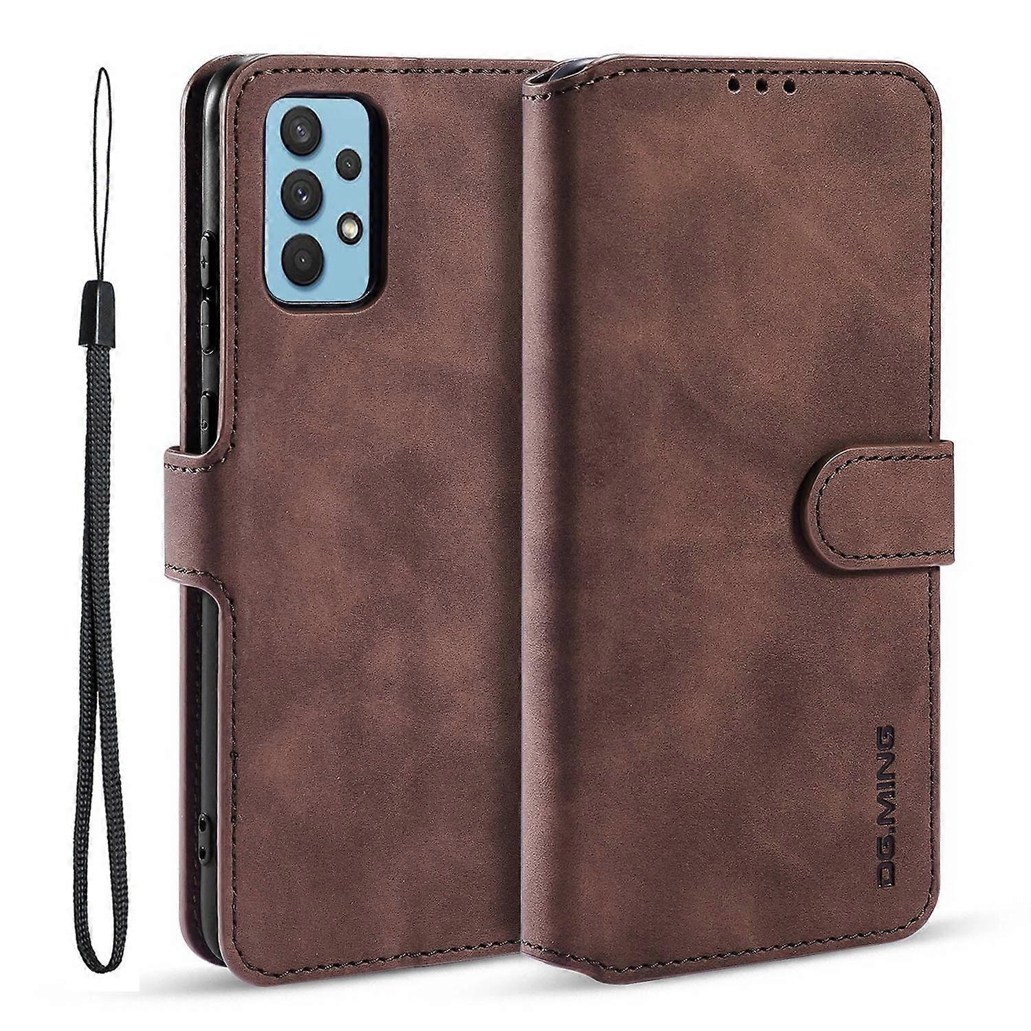 DG.MING Retro Style Leather Wallet Stand Case Shell for Samsung Galaxy A32 4G (EU Version) - Coffee