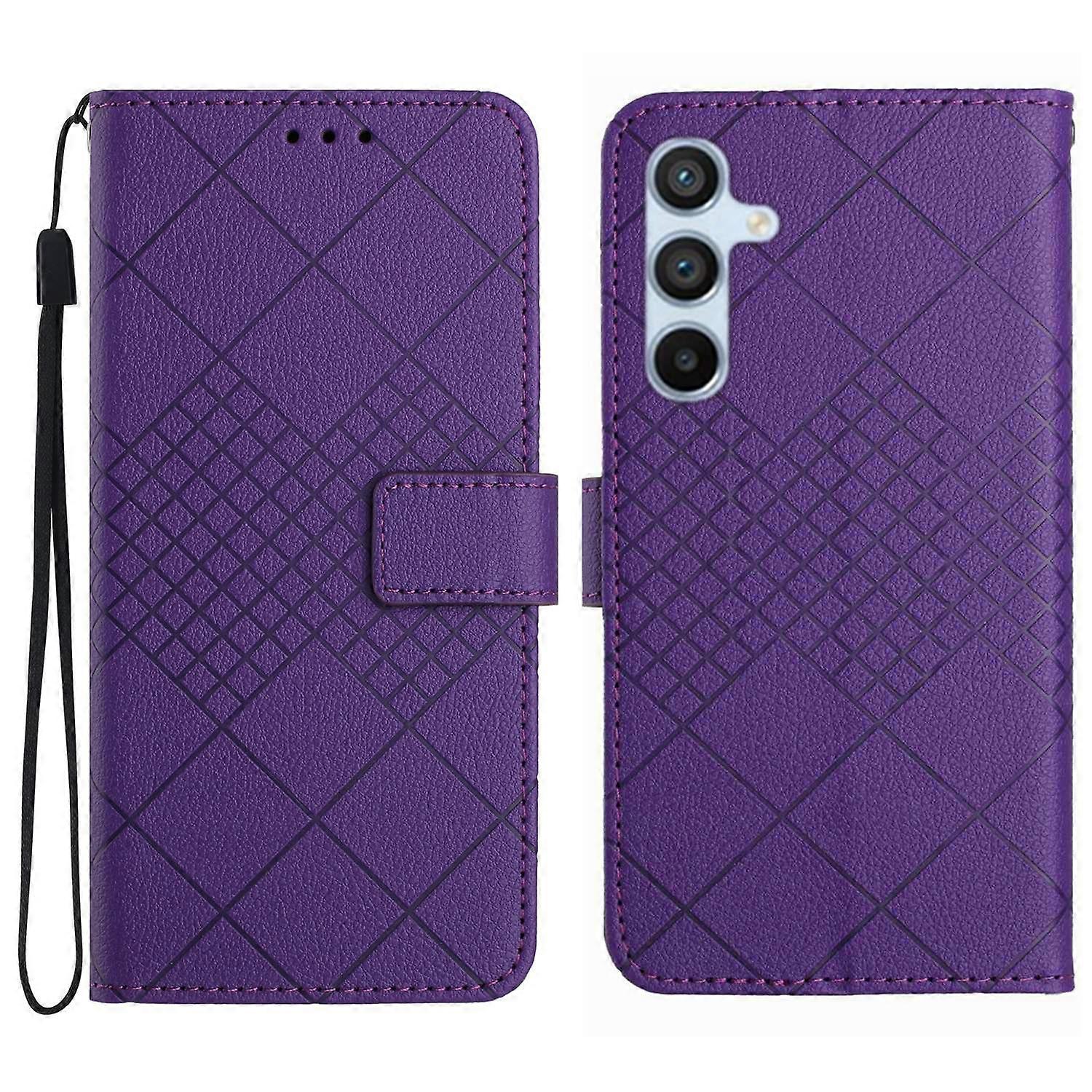For Samsung Galaxy A56 5G M56 5G Wallet Phone Case Imprint PU Leather Flip Folio Cover - Dark Purple