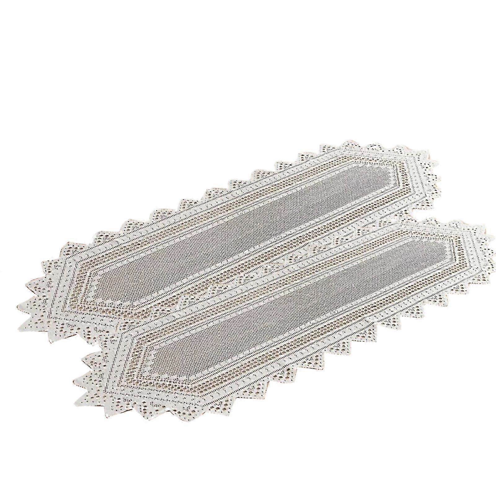 White Hand Crocheted Lace Table Doilies, 2Pack Cotton Table Runners for Sophisticated Dining Decoration White