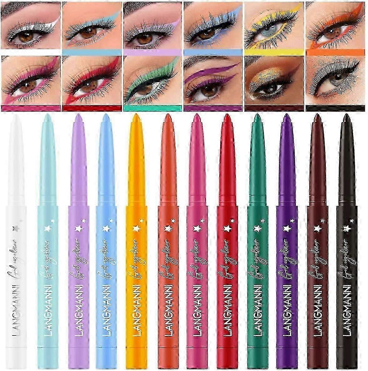 12 Colours Matte Eyeliner Set, Colourful Rainbow Neon Eyeliner Pen, Smooth