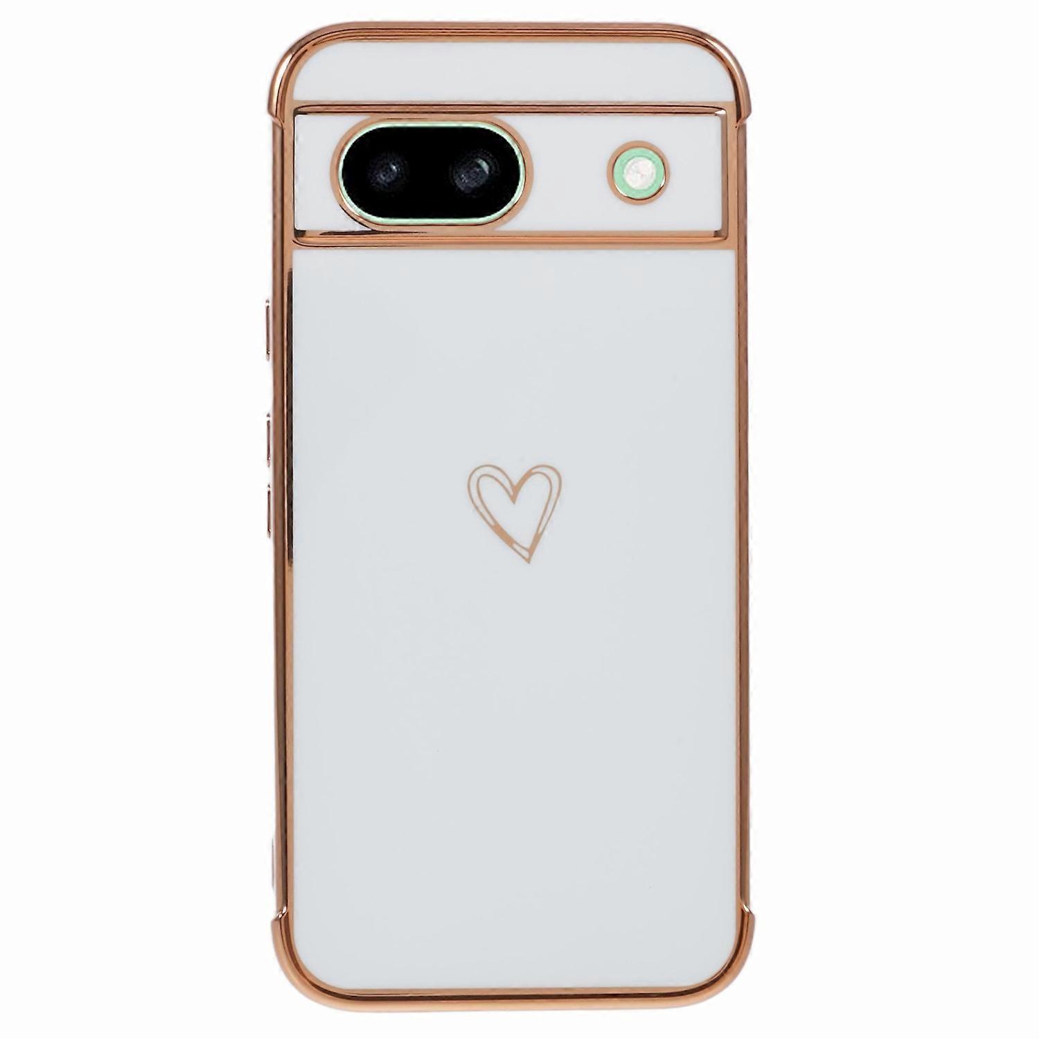 For Google Pixel 8a Case Love Heart TPU Shockproof Protective Phone Cover - Ivory White