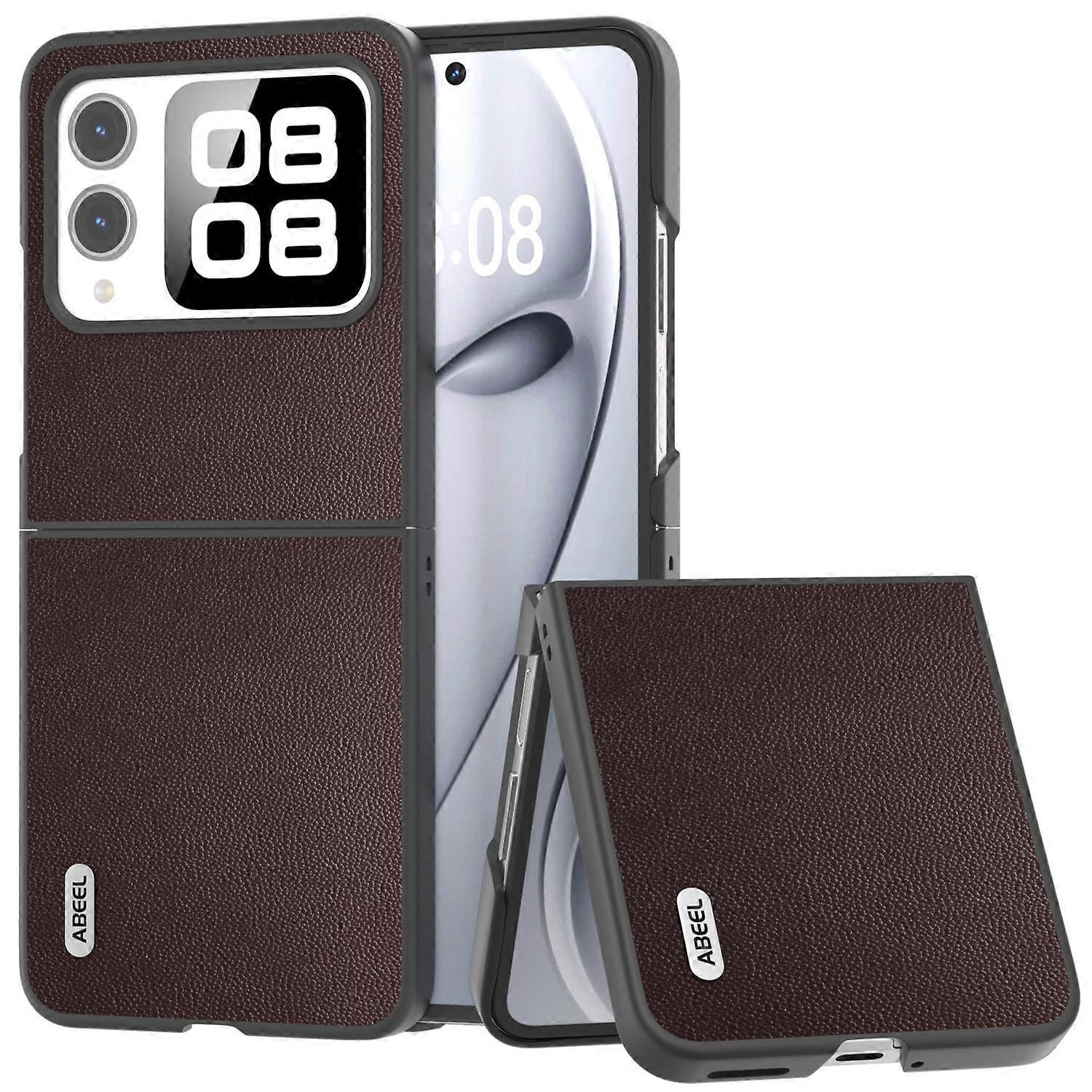ABEEL For Huawei nova Flip 5G Case Anti-Drop Genuine Cow Leather PC Phone Cover - Coffee