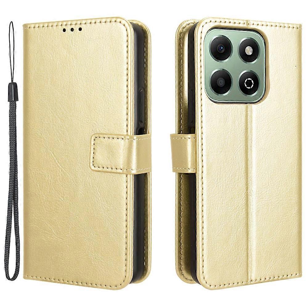 For Honor X6b 4G Phone Stand Case Crazy Horse Texture PU Leather Cover Wallet - Gold
