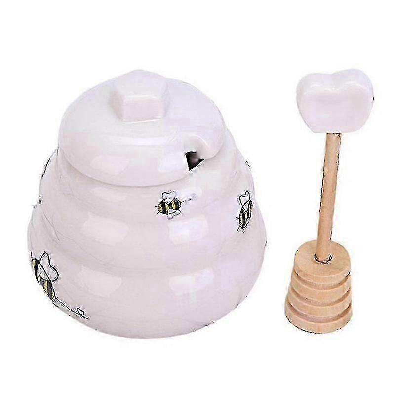 Ceramic Beehive Honey Pot With Wooden Dipper | Miniature Decorative Honey Pot