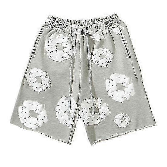 Globa Shop Men Shorts Flower Print Drawstring Waist Loose Pockets Pleated Beach Sport Casual Homewear Short Pants M grey Men Shorts Flower Print Drawstring Waist Loose Pockets Pleated Beach Sport Casual Homewear Short Pants M grey