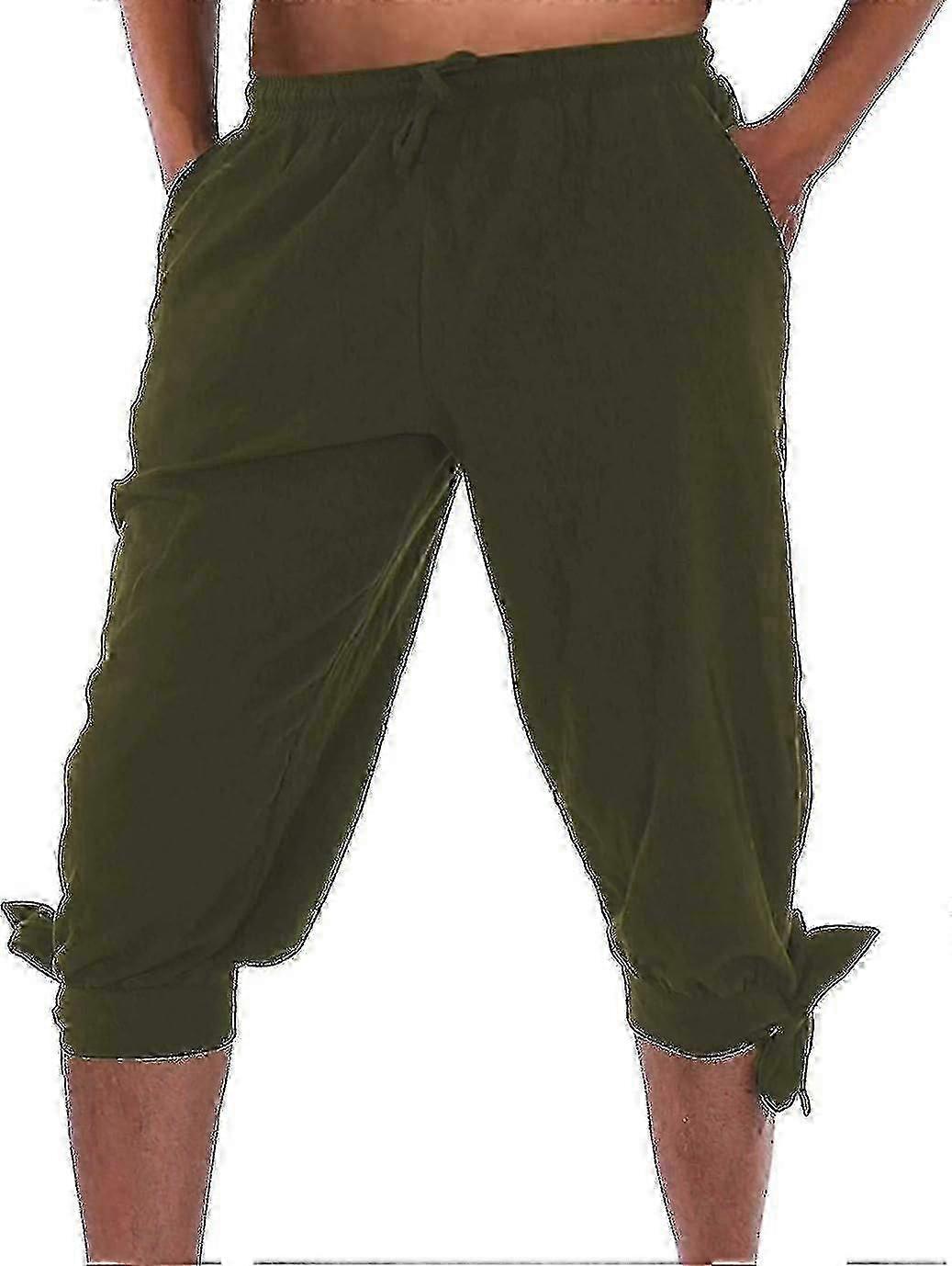 Globa Shop Men's Ankle Banded Pants Medieval Pirate Costume Trousers Renaissance Gothic Pants Large Army Green-short