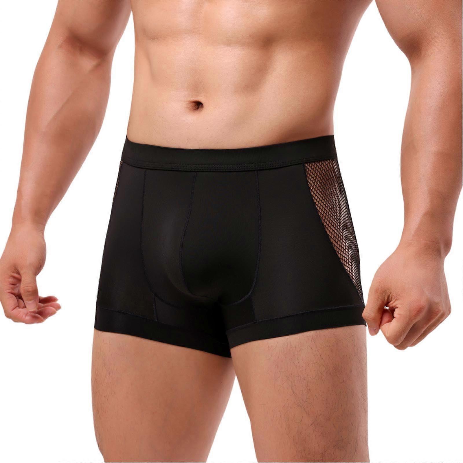 Sexy Slips for Men Nylon Highly Elastic Lightweight Mid Rise Semi-Transparent Ski Underwear Black Size M