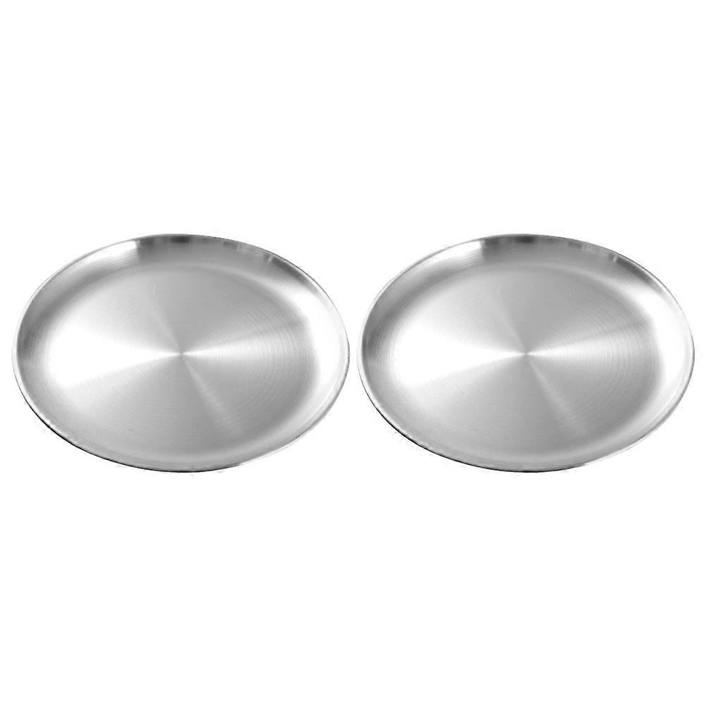 Bbq Plate 2Pcs Silver Stainless Steel Plate Compact and Portable Snack Dish for Home Use
