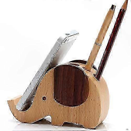 Wood Elephant Pen and Phone Stand, Desk Decorative Holder, Holiday Gift Idea