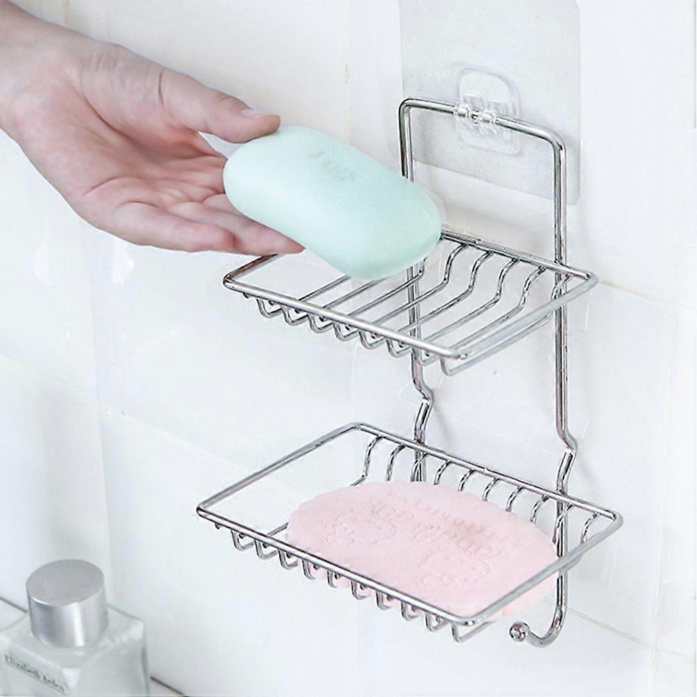 Description Double-Layer, larger space. Chromium plated hanging soap dish holder makes your home stay bright and clean. No Glue No Drill No Damage. Suction hook is removable and creative. Outstanding bearing capacity rack,can bear more. The suction cup can be washed, and can be reused after drying. Feature - Color:Silver - Material: Stainless steel - Size: 27 x 11 cm. - Storage more, Double means more, Double Rack means you can storage more things than these single rack soap holder - Waterproof and oilproof, The adhesive soap dish is waterproof and oilproof. Soap holder fits for kitchen shower bathroom office or anywhere you need - Soap holder shower has no nails, no drillings, no screws. The soap dish holder is on your smooth walls and can cleanly and easily be removed - This soap dish holder features water proofPackage list: 1 x Soap Dish Holder (Style Random)