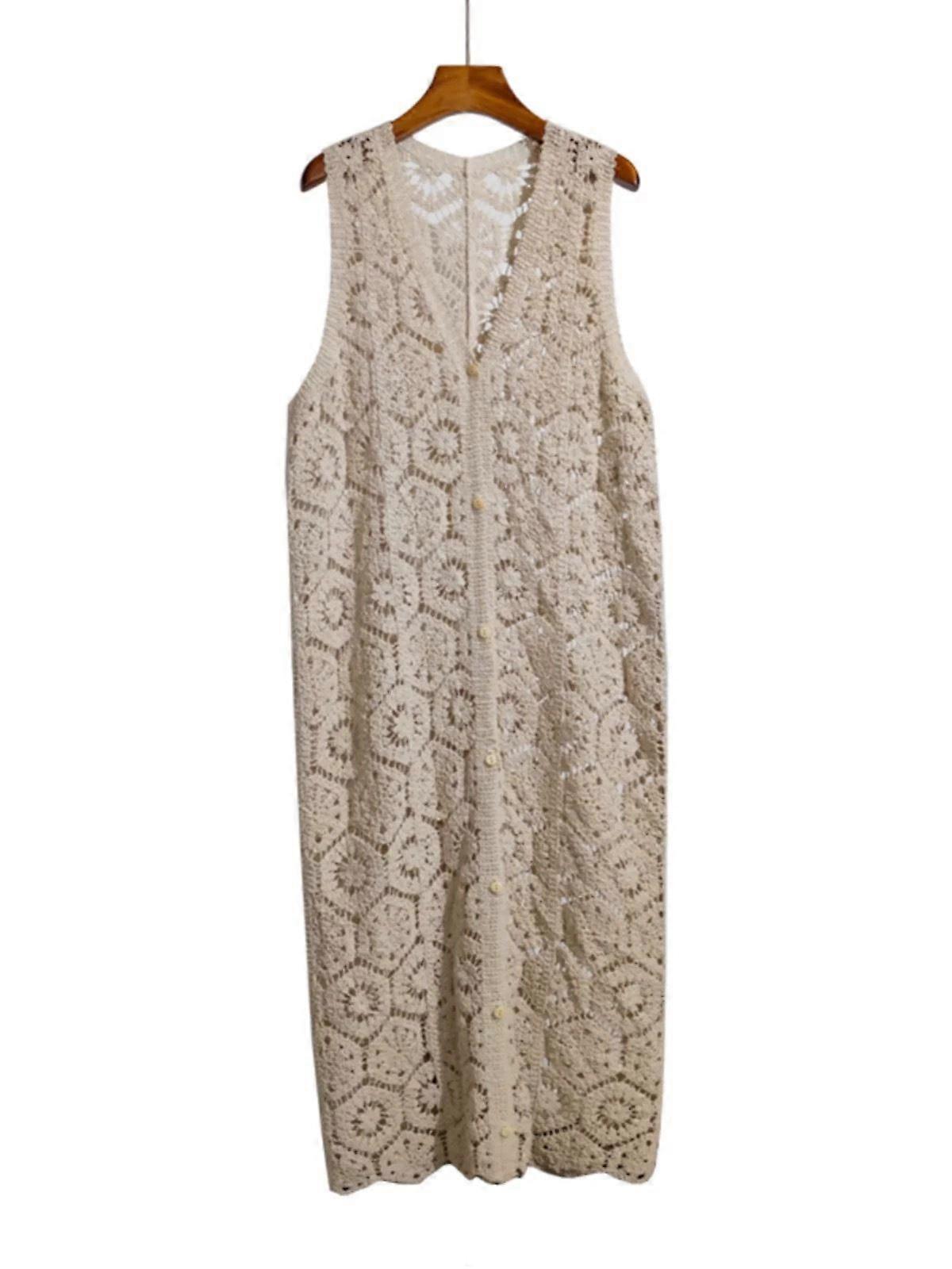 Hollow Vest Skirt Ice Silk Vest Knitted Sweater Women's Thin Outer Long Blouse Seaside Vacation Style Stacked Top