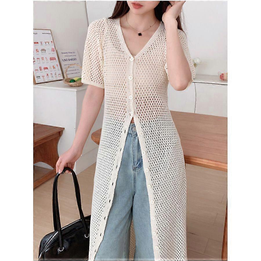 Real Shot: V-Neck, Slimming And Form-Fitting Top, Sun-Protective Shirt, Design Sense, Short-Sleeved Knitted Cardigan For Women's Summer, Long And Cuto