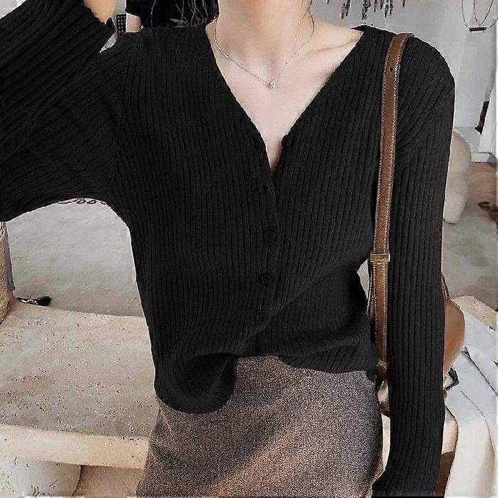 V-Neck Knitted Cardigan Women's Sweater Casual Wear Short Autumn And Winter Inner Bottoming Shirt Top Autumn