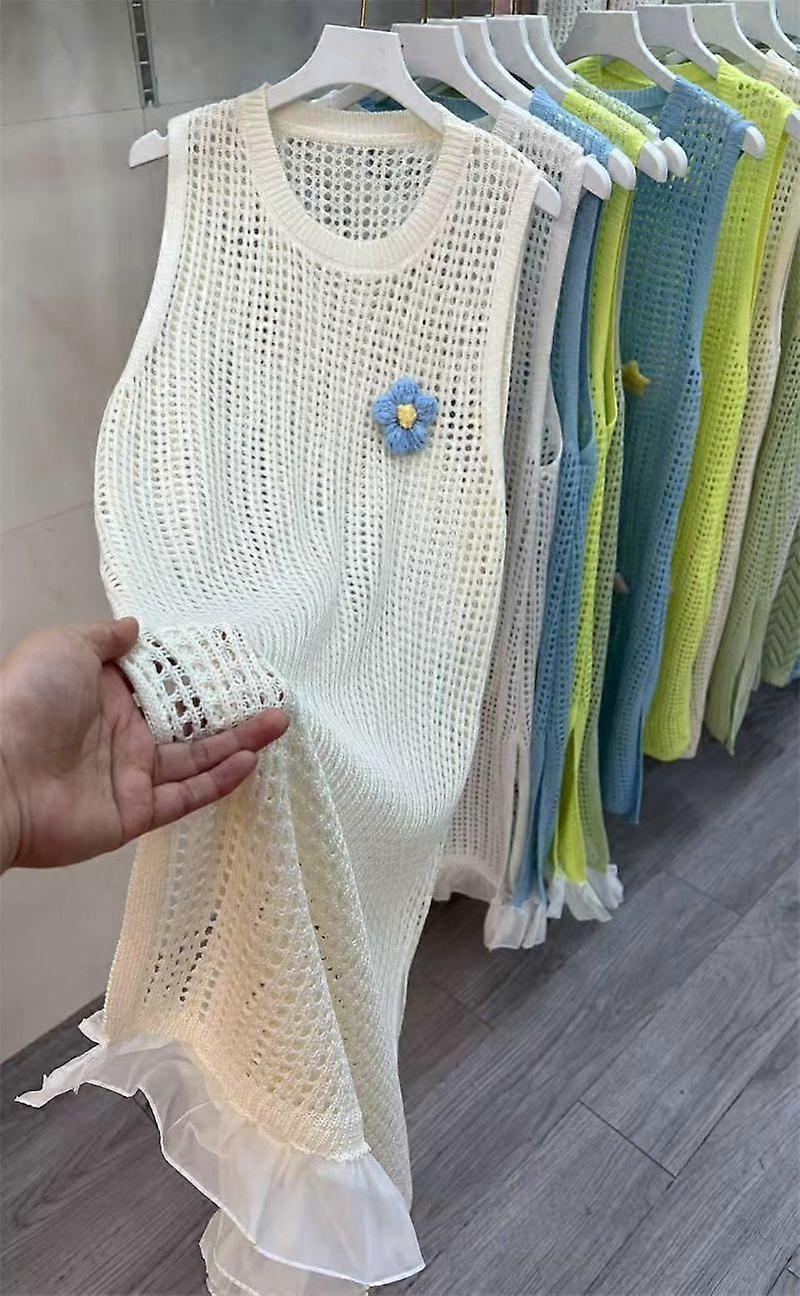 Korean Style Three-Dimensional Flower Cutout Vest Skirt Women's Spring/Summer Cute Youth-Looking Bandage Dress Sleeveless Long Dress Blouse