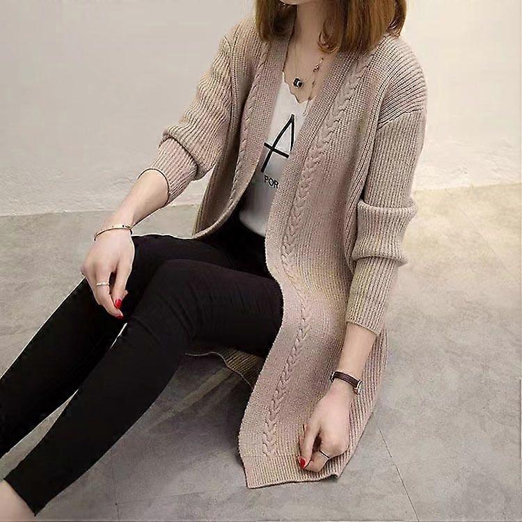 A Classic Korean V-Neck Long-Sleeved Loose And Casual Mid-Length Knitted Cardigan For Women In Autumn And Winter