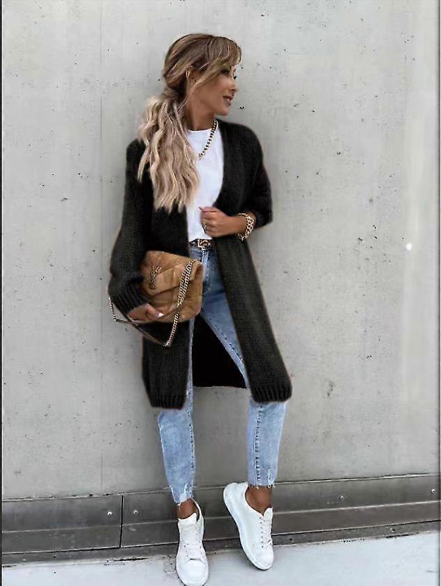 Women's Autumn And Winter Loose Knitted Cardigan Solid Color Long-Sleeved Mid-Length Sweater Coat