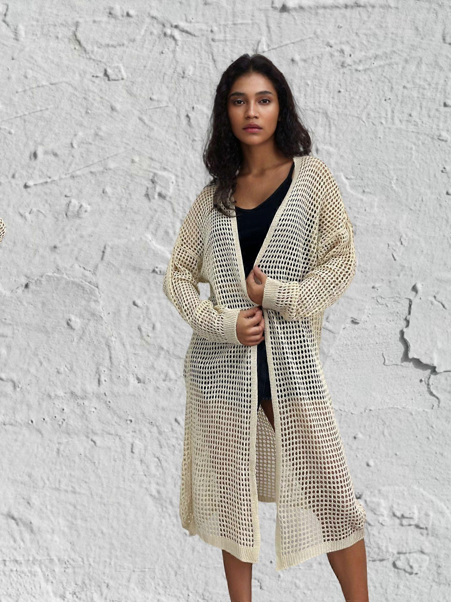 Spring And Summer Knitted Coat Hollow Out Beach Seaside Vacation Long Women's Sun Protection Cardigan Knitted Blouse