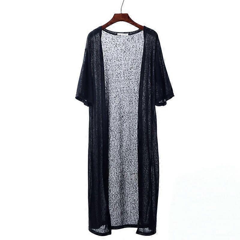 Summer Thin Type Sunscreen Cardigan Women's All-Match Short-Sleeved Solid Color Knitted Air Conditioning Shirt Mid-Length Plus Size Shawl Outer Match