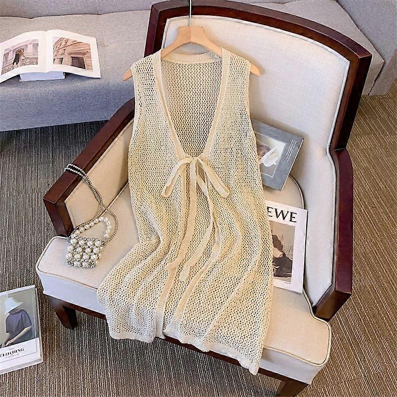 Sleeveless Cardigan Shirt For Air-Conditioned Rooms Bandage Dress Vest Skirt Summer Sun Protection Hollow Out Tied Long Blouse For Women