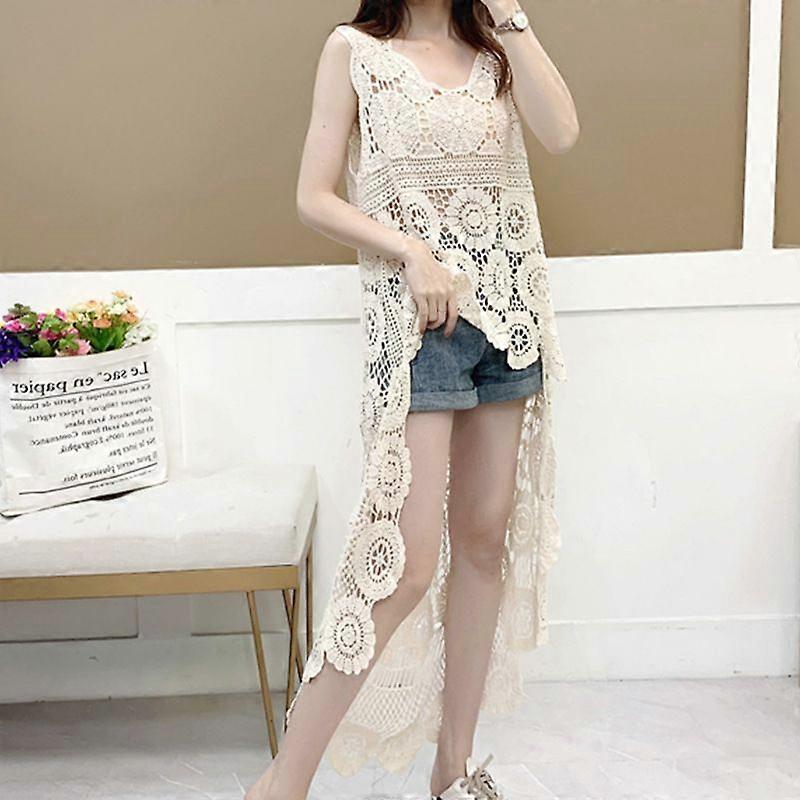 Direct Supply Summer Vest For Women, Mid-Length Crocheted And Cut-Out Knit, With A Retro Style Featuring A Shorter Front And Longer Back