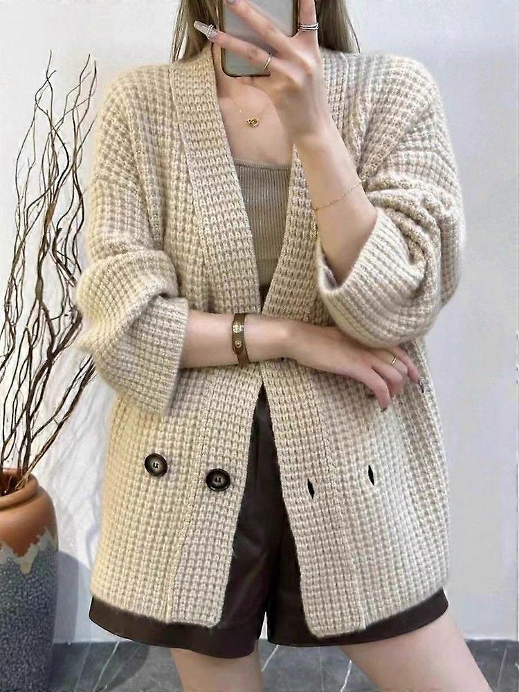 This Autumn And Winter V-Neck Sweater Is A Loose, Thickened, Double-Breasted Korean-Style Coat With Gold Coin Needle Buttons