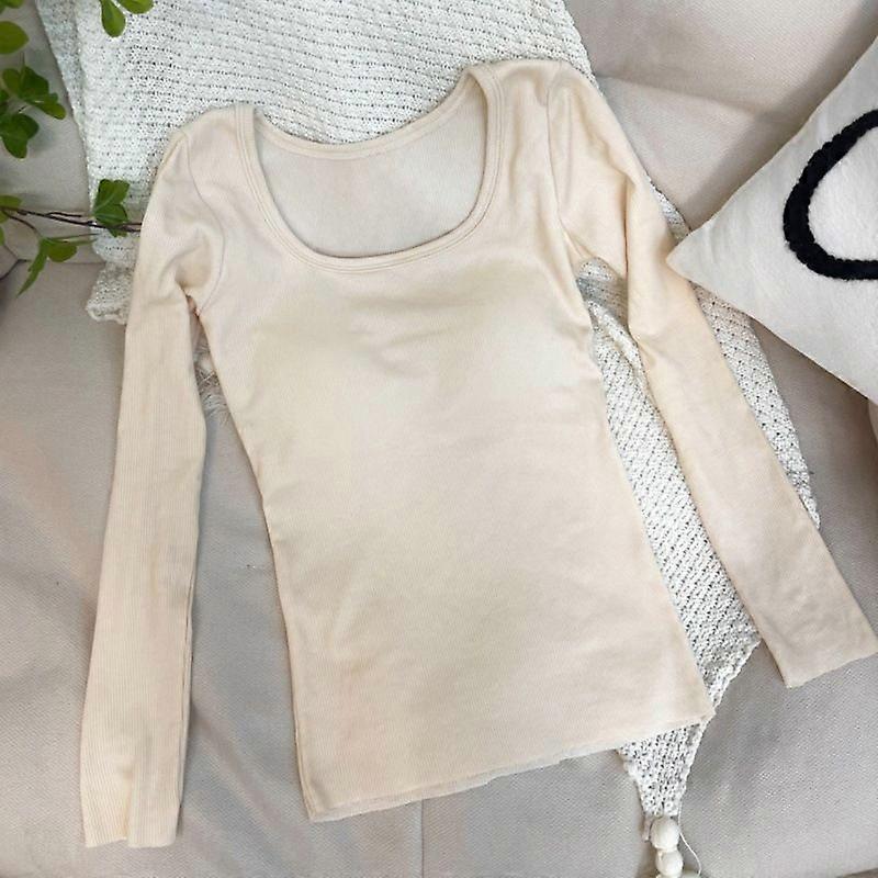 Autumn And Winter Brushed Women's Solid Color Fashion All-Match With Chest Pad Base Shirt T-Shirt Fall/Winter Slim Slimming Square Collar