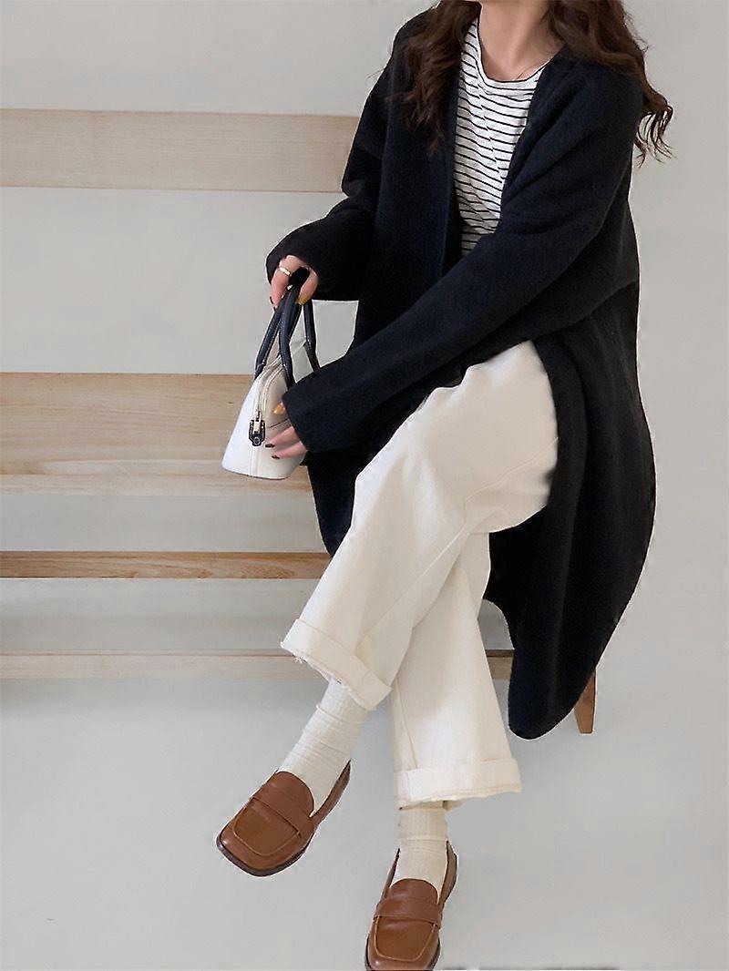 Fenafu Autumn Girl Loose Mid-Length Knitted Cardigan Women's Lazy Casual Spring Autumn Coat Women
