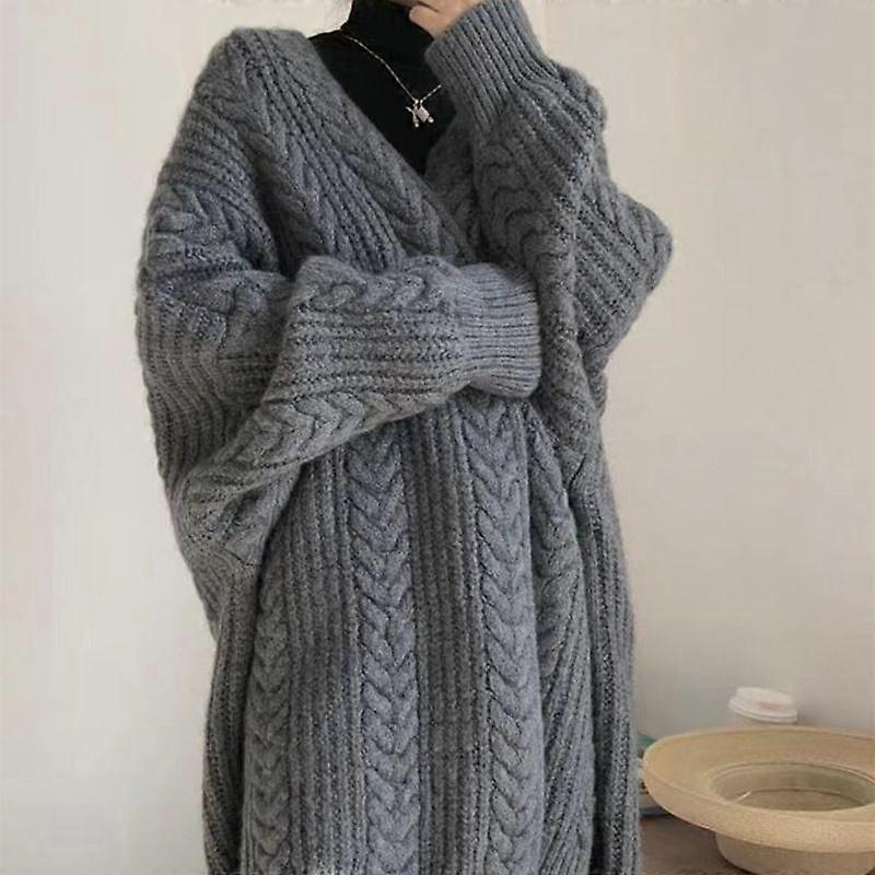 Sweater Coat For Women Cable Loose-Fitting Plus Size Idle Style Korean Style Mid-Length Autumn And Winter European Station Knitted Cardigan Outer Wear