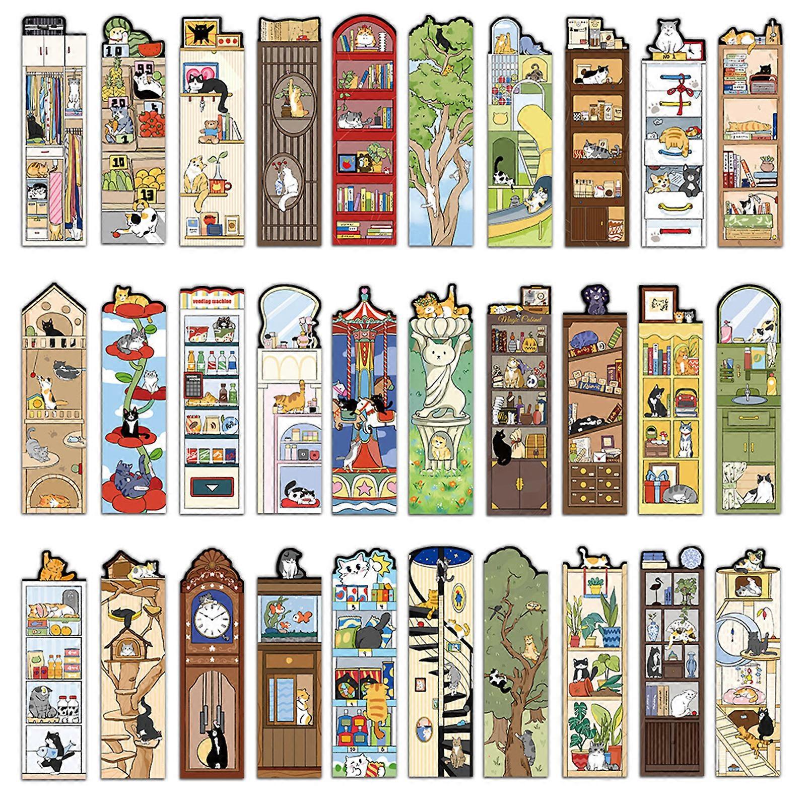 30 Sheets/Set Cartoon Cats Reading Page Marker Creative Bookmarks Aesthetic Book Markers Page Marker Reading Supplie Multicolor