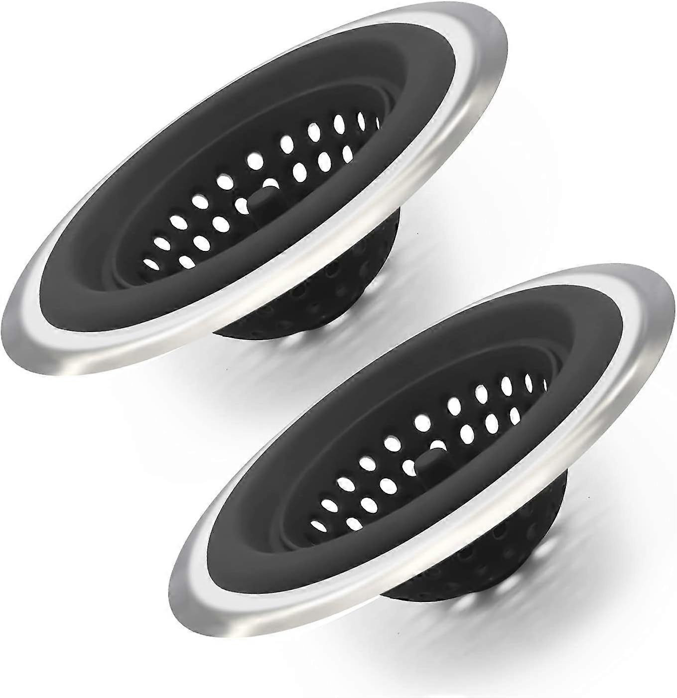 2PCS Sink Strainers,Flexible Silicone and Stainless Steel Kitchen Sink Drainer BasketsLarge Wide Rim 11.7 cm Diameter,Rust Free,Prevent Food Residues