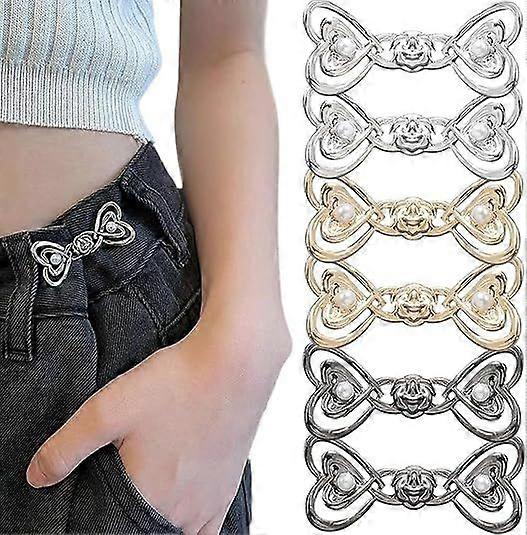 6 PCS Pants Waist Tightener Jean Buttons for Loose Jeans No Tools Detachable Decorative Waist Buckles No Sewing Adjustable Button Love Heart Pearl But
