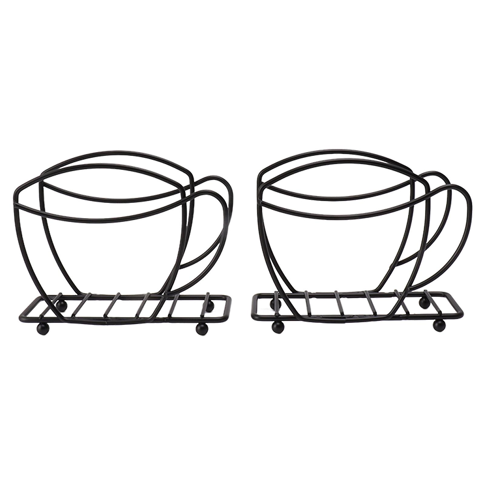 Set of 2 Black Coffee Cup Shaped Napkin Holders Classic Design Kitchen Tabletop Dining Room Tea Cup Style Metal Paper Napkin Organisers for Home Us