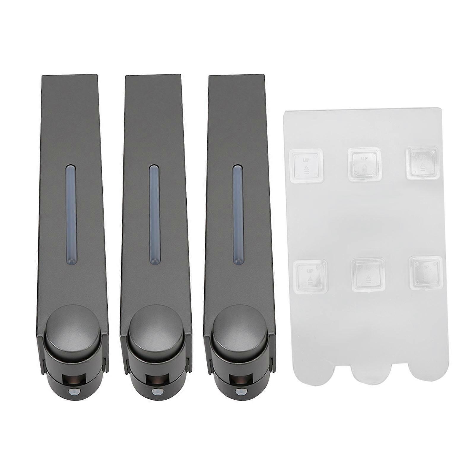 Wall-Mounted Manual Soap Dispenser Non-Drilling Hotel Bathroom Adhesive Installation Shower Gel and Shampoo Holder Gunmetal Grey 3-Pack Durable Plasti